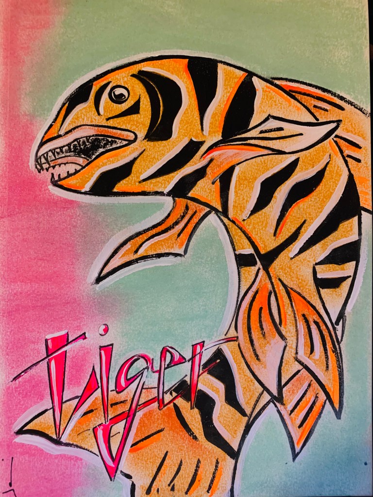 I was drawing a watching the movie Rango and there was a line in the movie that struck me: “No one can walk out of their own story.” I love this. This is true. I was practicing graffiti today. I am not happy with the outcome. I however; lean on the great advice that everyone sucks at the start.. and so with some balance of humor, I try to constantly ride out this learning curve. I am posting my graffiti attempt below. I decided to use my own family as the start of specific graffiti characters. There are four of us and I gave us all character names: Hot Sun; Slick Fish, Tiger Owl; and Dove. I started with Hot Sun. I am going to attempt her again tomorrow with the goal of having something ready to go by January 31st which is when the #100dayproject starts.