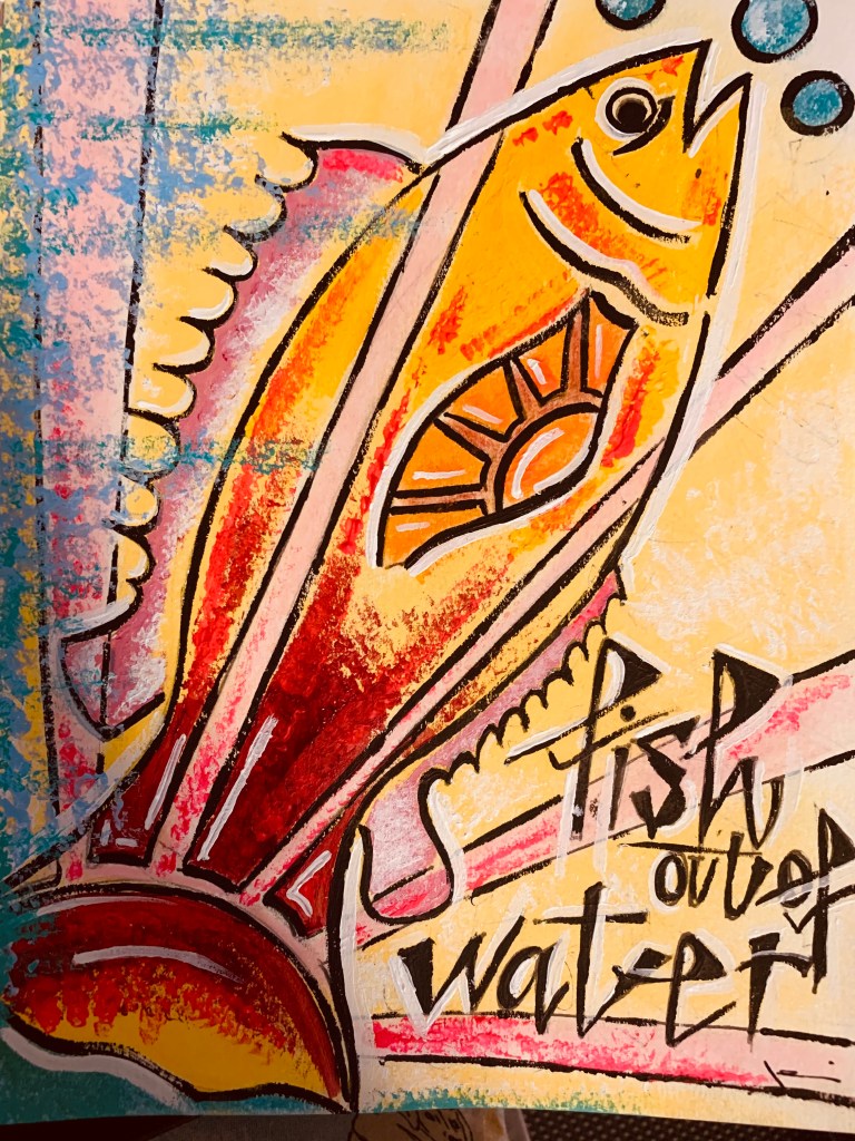 How many times can I start my entry with the realization that I did not get up at 5am? I guess as many as it takes until I do. I finally locked in to the #100dayproject and stuck with 100 Talking Fish. I think the story telling piece will be hard. Will I have 100 stories to tell? I decided to do the fish on individual pages instead of a large canvas. I think the individual pages will give me more flexibility and more room for error. So many times, I thought about bailing on this project. I thought about not even starting it out of concern that it was a distraction to other goals knowing that my time is limited. Something in me pushed me forward. A nudge perhaps. I have to admit that I am approaching this particular nudge with some discomfort. Nonetheless; I committed. 100 days.